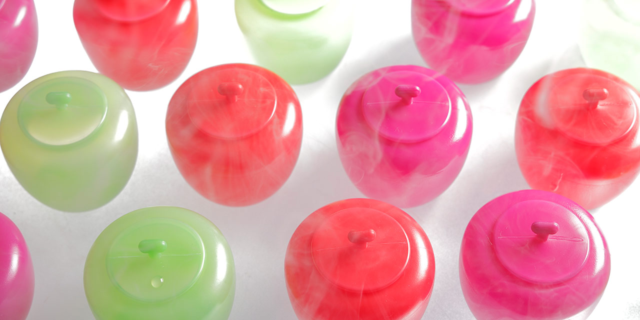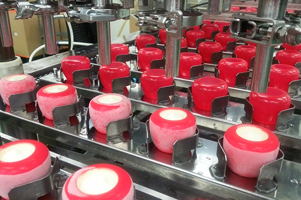富山のアイスクリーム製造会社でアイスが作られ、容器に充填していきます。最後にふたをかぶせて、「信州りんご玉」「信州シャインマスカット玉」「信州クイーンパープル玉」の完成です♪