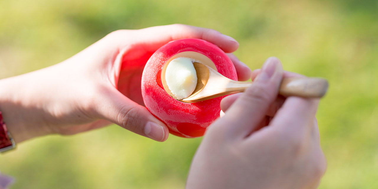 そんなおもてなしの心をカタチにしたのが、りんご容器のりんごのアイス。